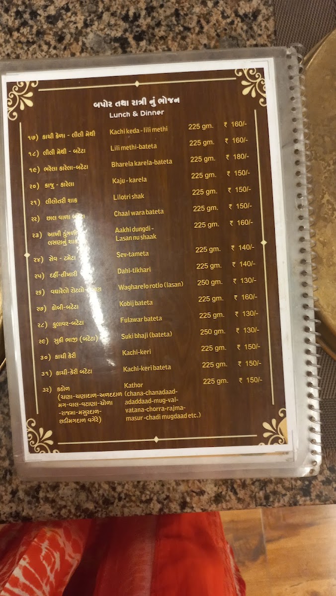 Step inside, and you're greeted by an atmosphere that feels both welcoming and mesmerizing. The carefully curated interior, adorned with beautiful Thamba plates and utensils, offers a glimpse into the rich culture of Gujarat. Guests rave about the thoughtfulness of the decor, which complements the homely feel of this culinary haven.